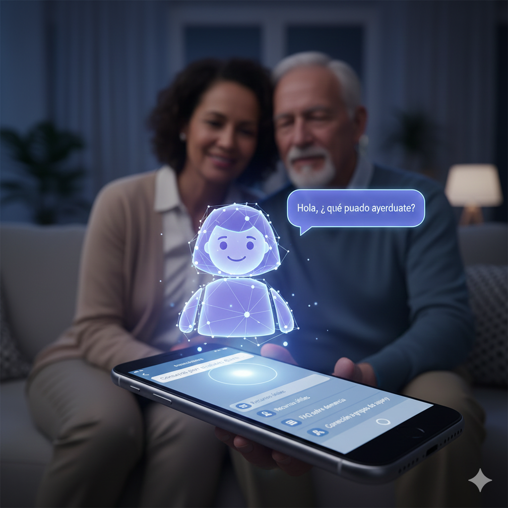 Accede a un chatbot sencillo y rápido que te permite hacer consultas sin necesidad de registrarte. Solo escribe lo que necesitas y el asistente te ofrecerá información inmediata y recursos útiles relacionados con el Alzheimer, otras demencias y el cuidado diario. Un apoyo disponible en cualquier momento para resolver dudas de forma ágil y accesible.
